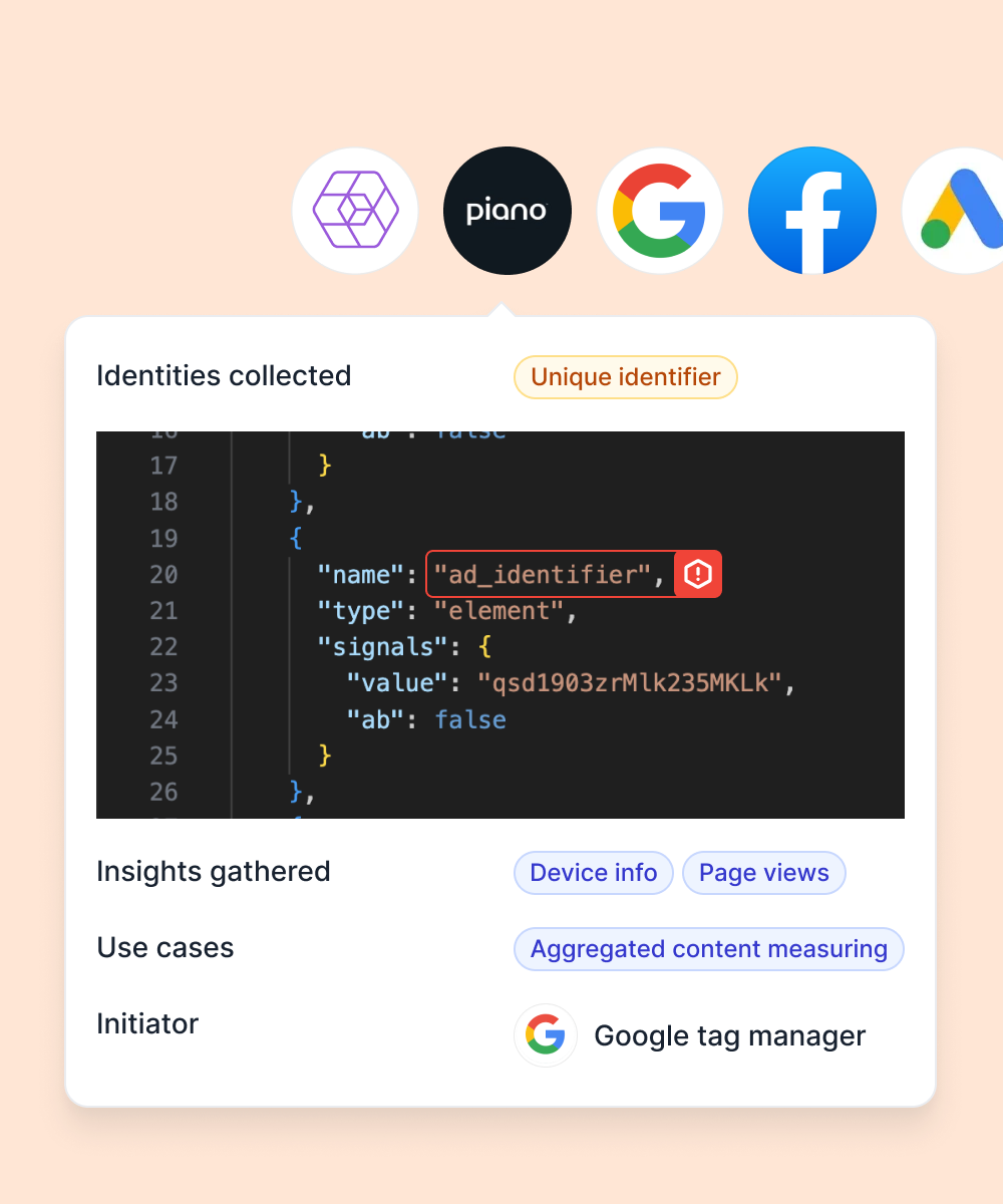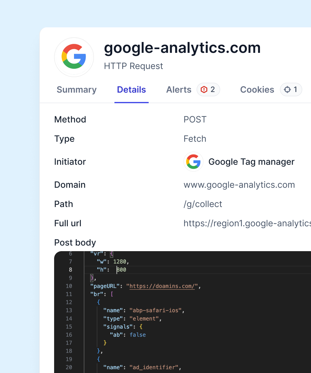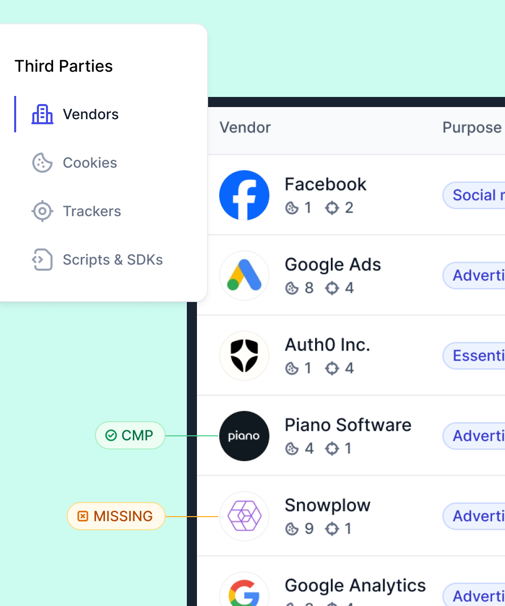 Do third parties follow your guardrails? Check compliance with agreements and privacy laws by continuously auditing embedded third-party code and tracking.