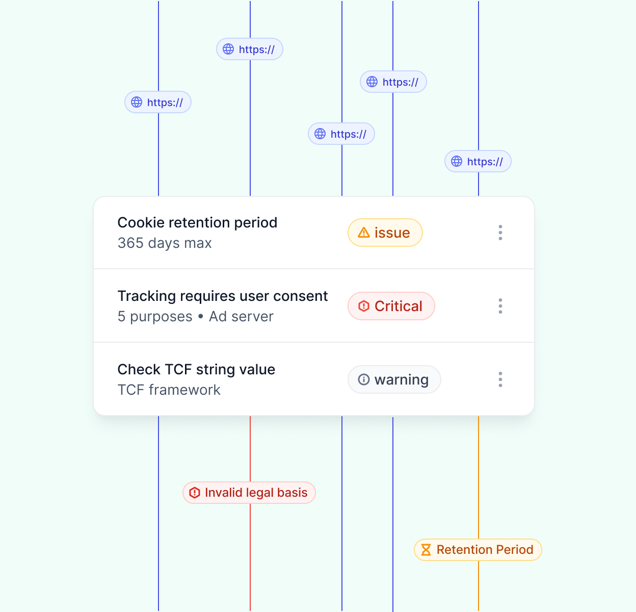 Simulate real user journeys across your websites and apps to uncover data flows, third-party tracking, and privacy issues.