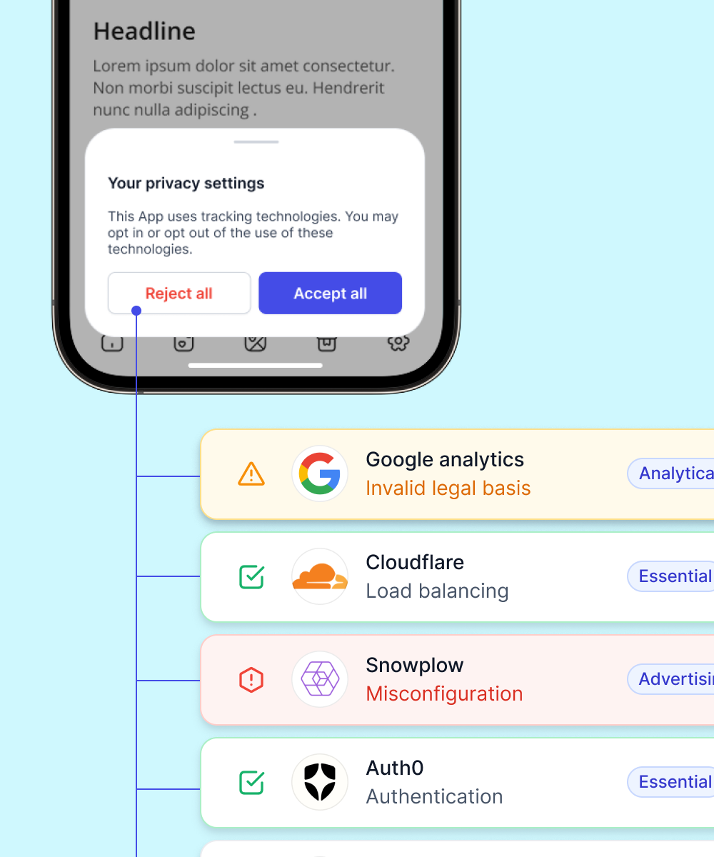 How does your consent management platform work behind the scenes? Ensure all cookies and trackers respect consent choices and device permissions.