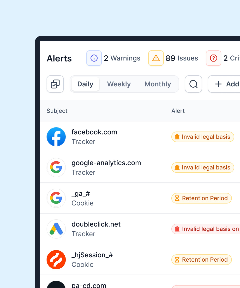 Webclew helps you proactively identify, understand, and manage privacy risks across your digital stack.